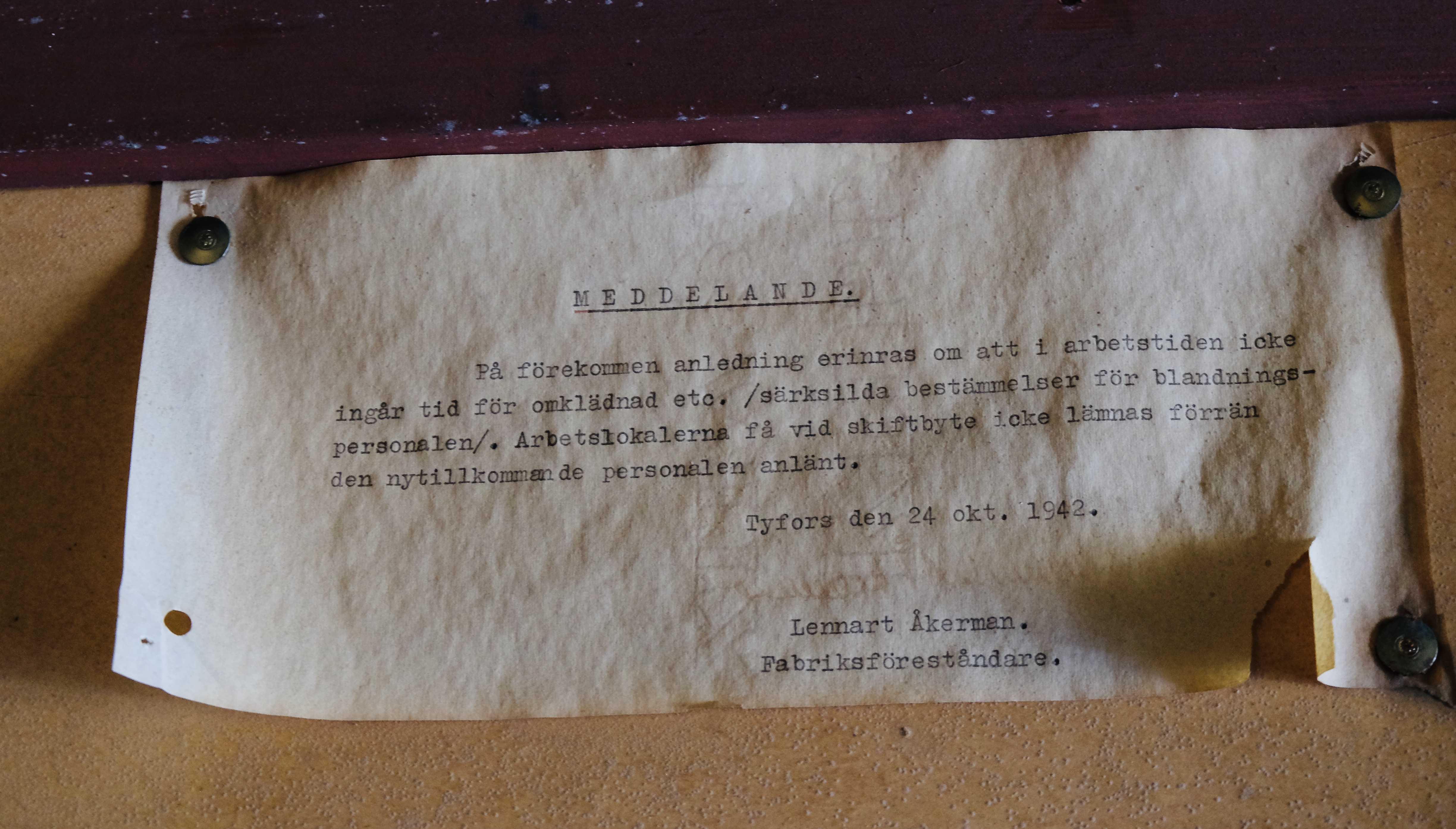 Ett dokument daterat 1945 från Sprit-destillationen.