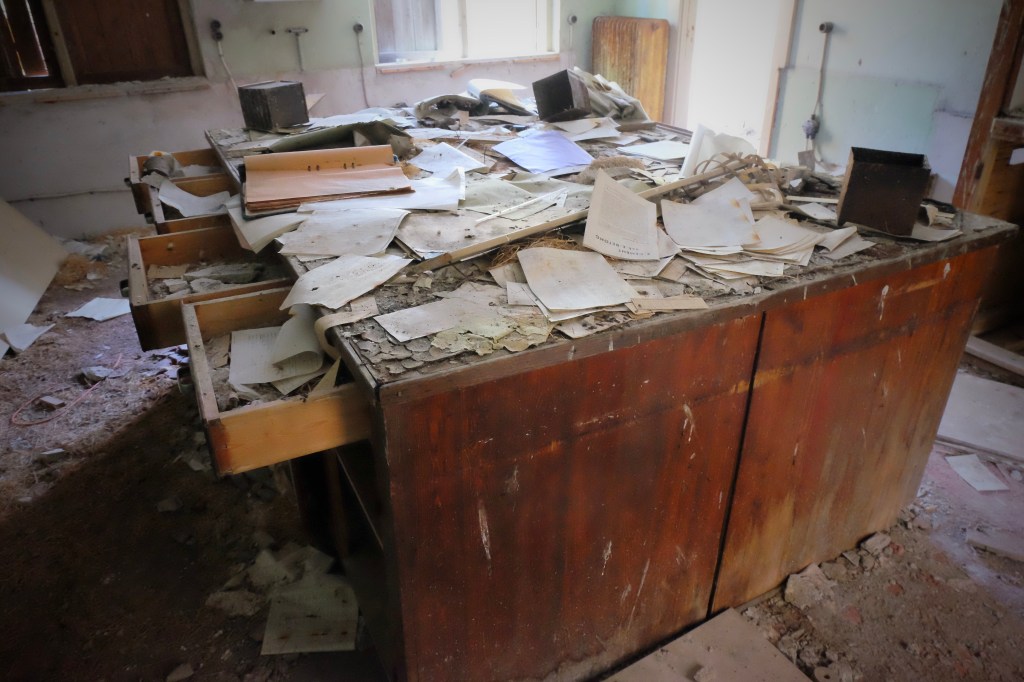 Kontoret. Mitt i ögonblicket kan man här nästan känna hur ett par män stod och gick igenom alla dagens siffror.