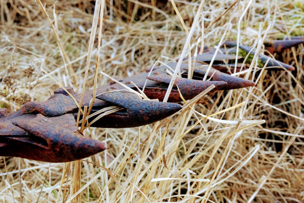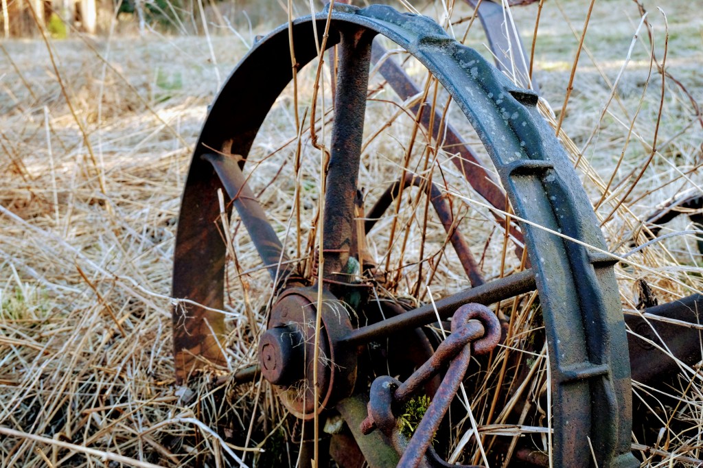 På gården står fortfarande ett gammalt jordbruksredskap och väntar