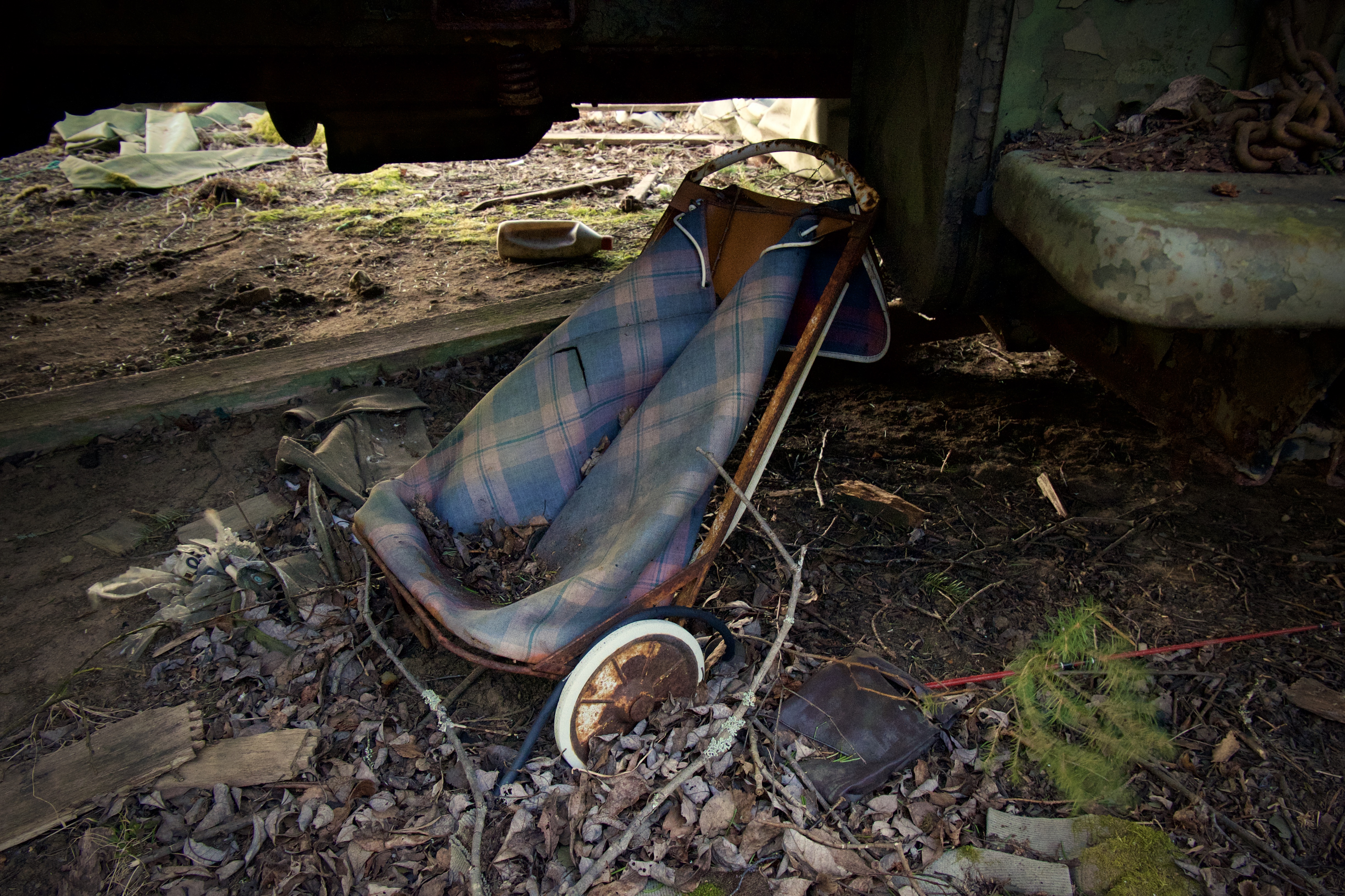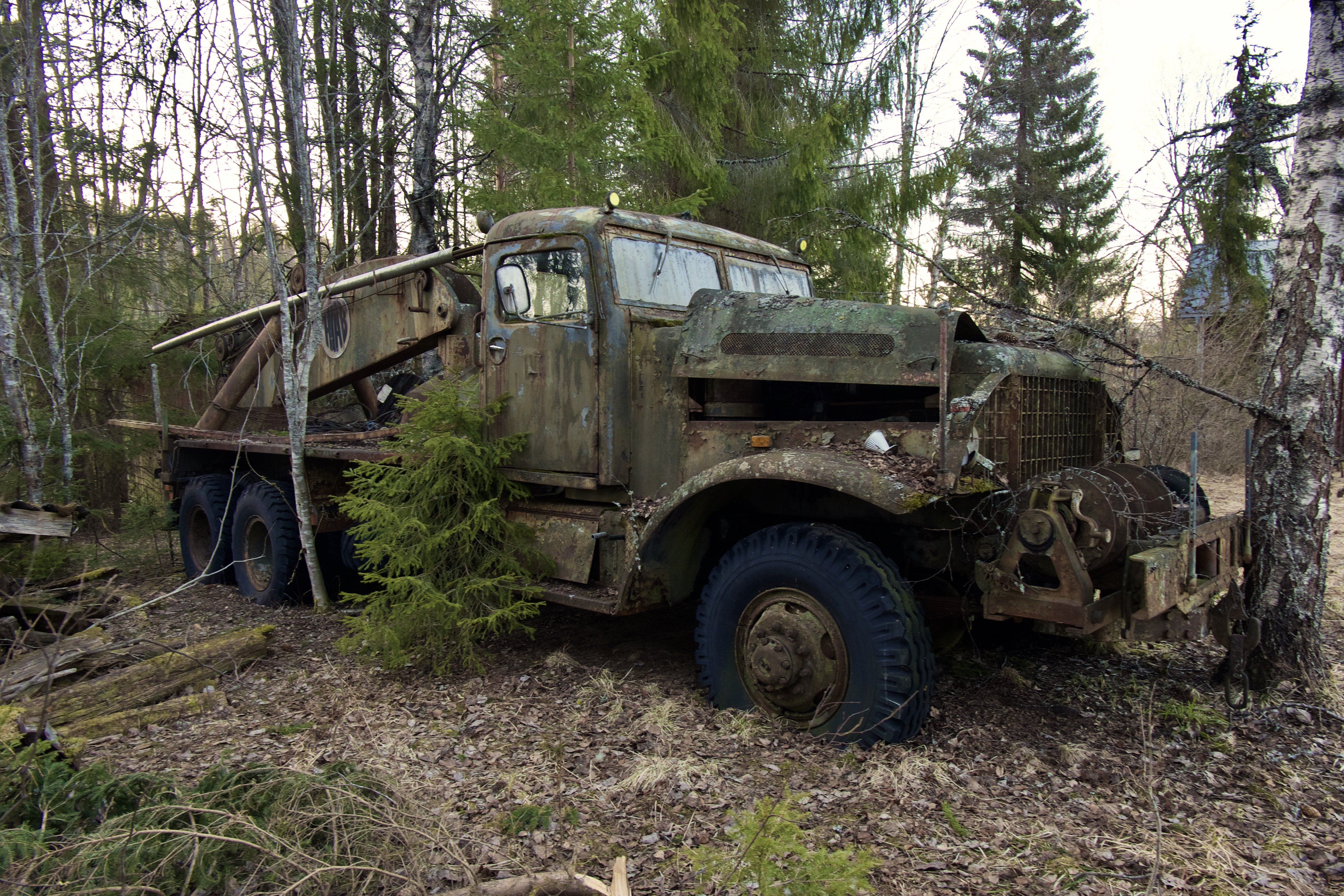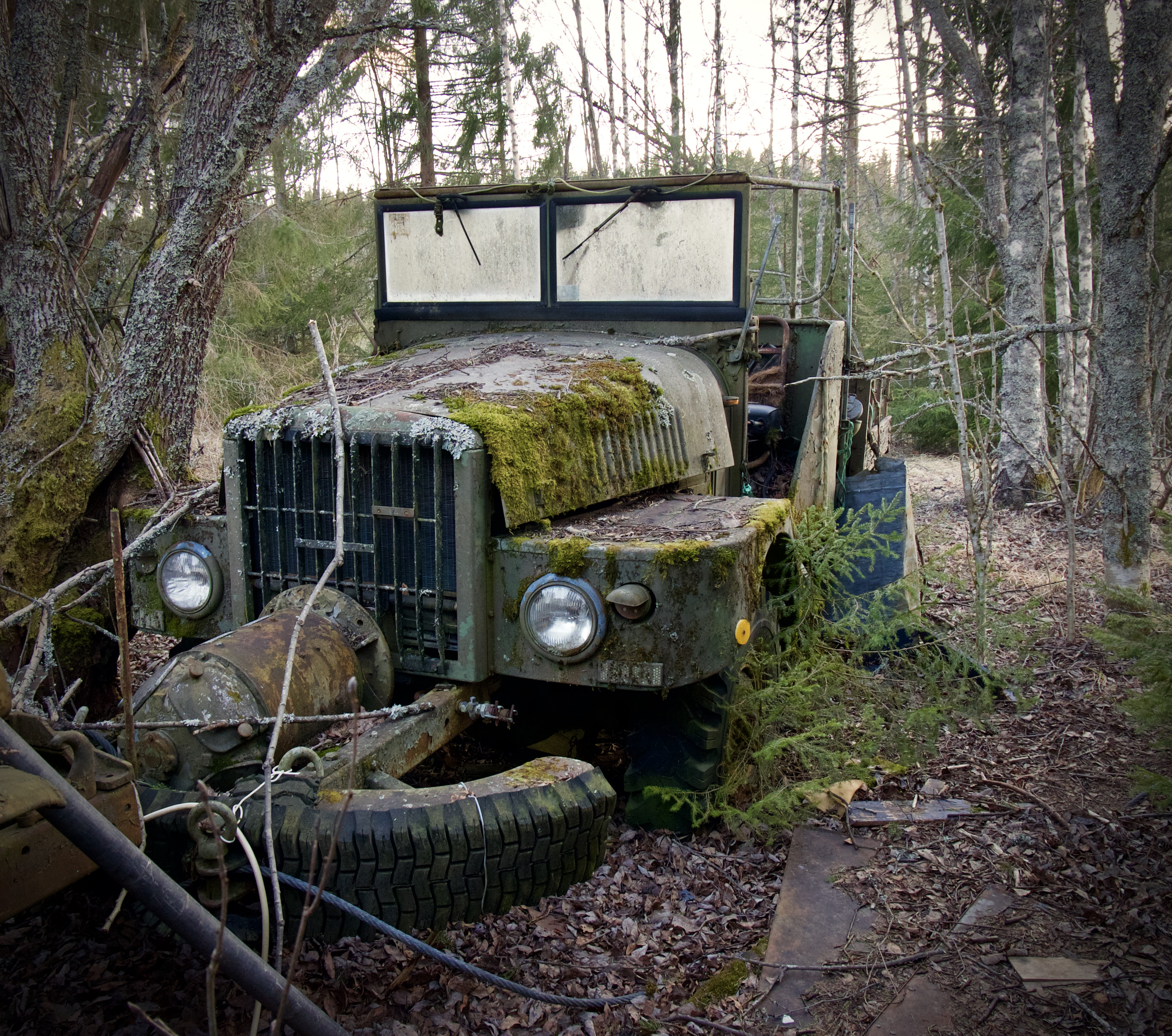 På gården finns ett antal olika fordon, bland annat ett flertal militärfordon, och mitt i ögonblicket får man en känsla av att de har varit viktiga i hans liv.