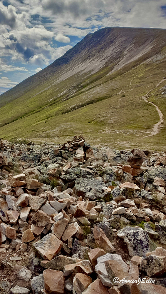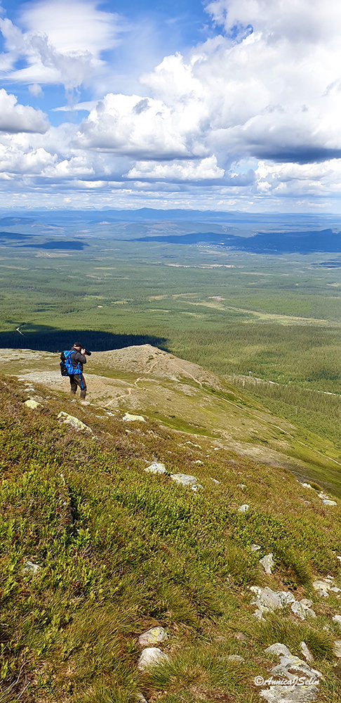 När vi kommit 2/3 upp mot toppen på Högfjället, tyckte vi att vi sett tillräckligt. Det var inte långt kvar till toppen, men vi valde att nu vända neråt igen.