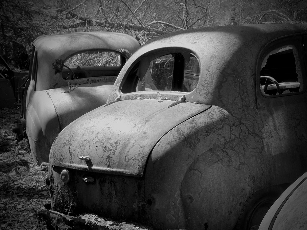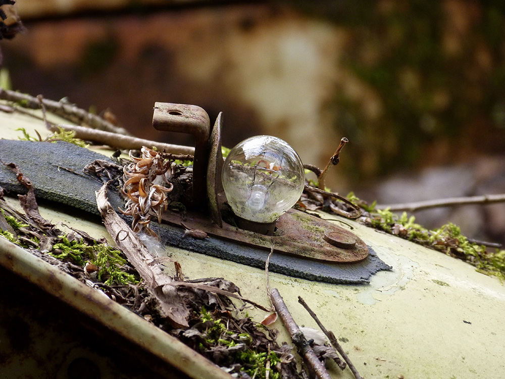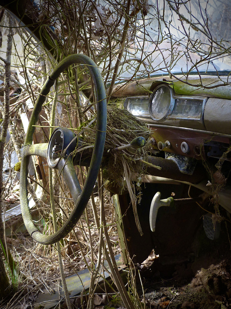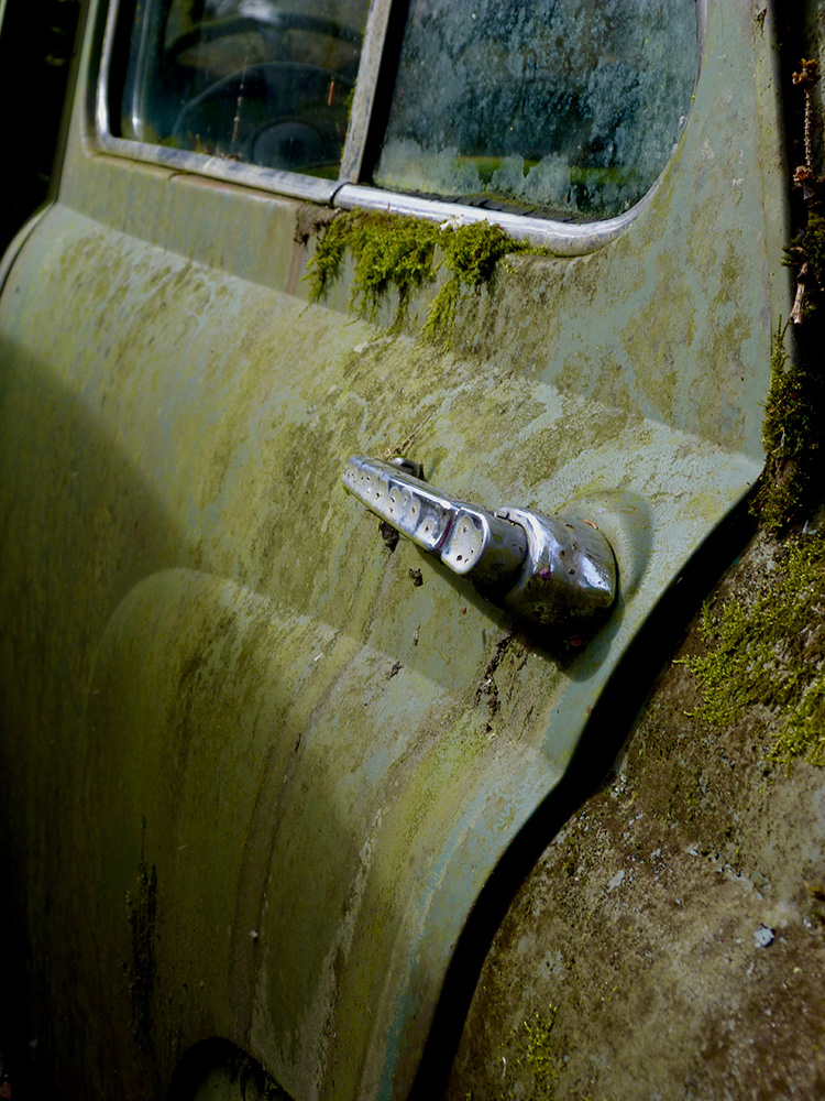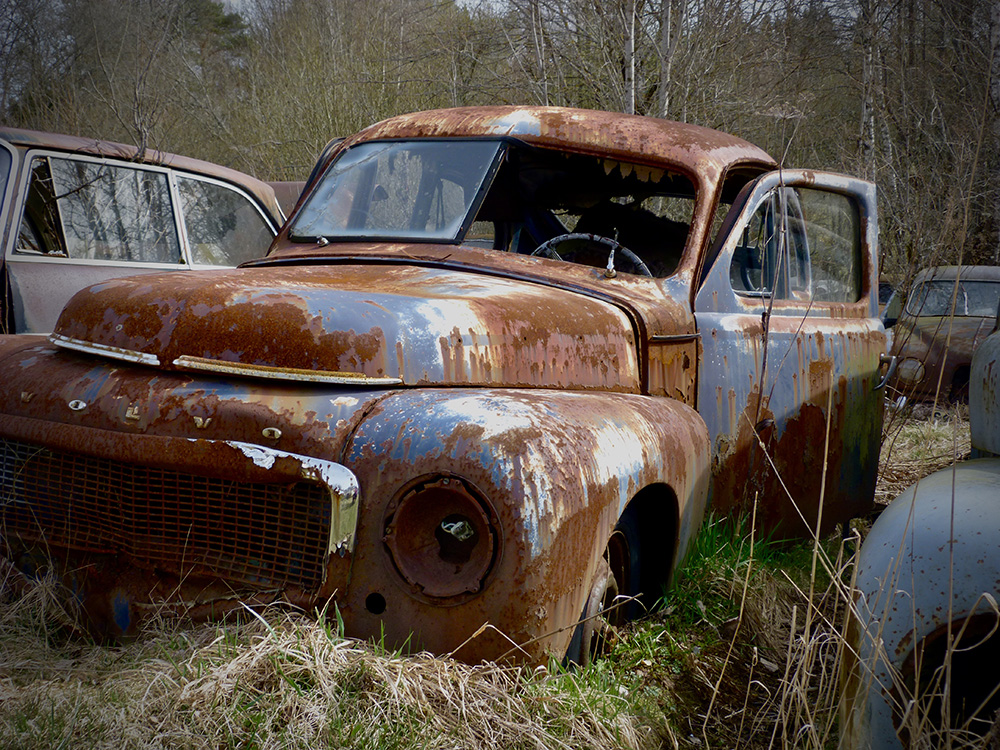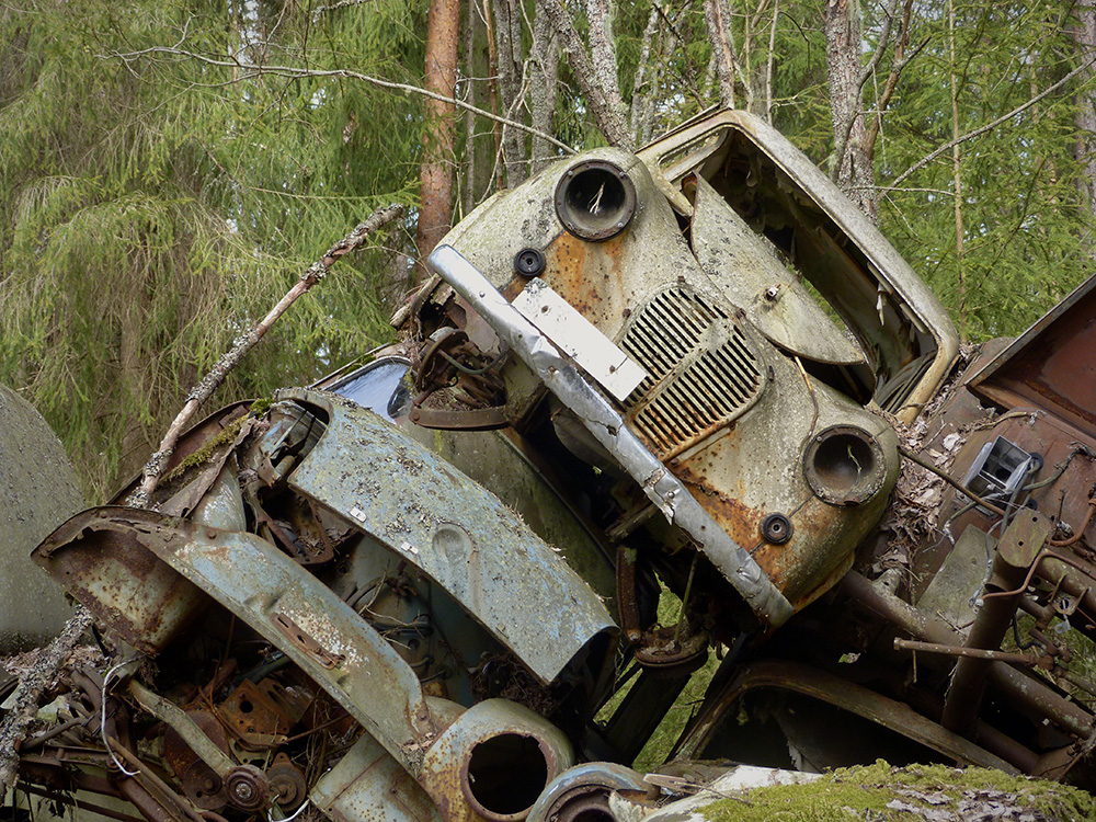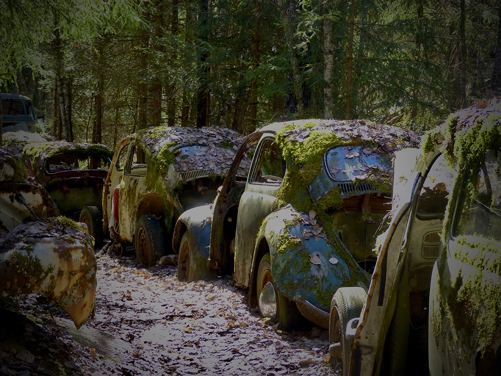 Det växer mossa på många rostiga bilar och träd har hittat sina egna nya vägar att växa, står något i vägen, får man väl växa igenom det…vilken växtkraft.
