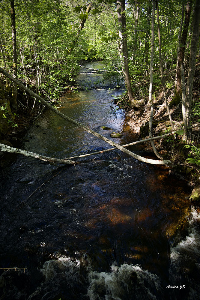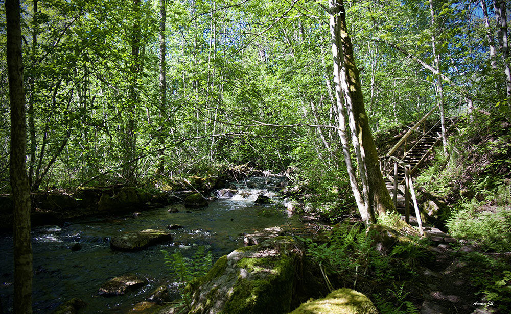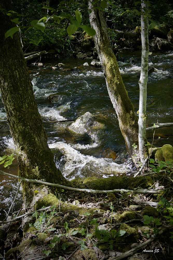 Ån, eller snarare älven, är för det mesta ivrigt småforsande, ibland tyst och stilla.