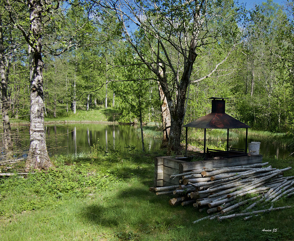 Strax intill Fyrbo, på andra sidan älven står det en åttkantig byggnad. Det är en grillstuga. Den är öppen för alla och en lämplig samlingsplats inför eller efter en vandring i området.