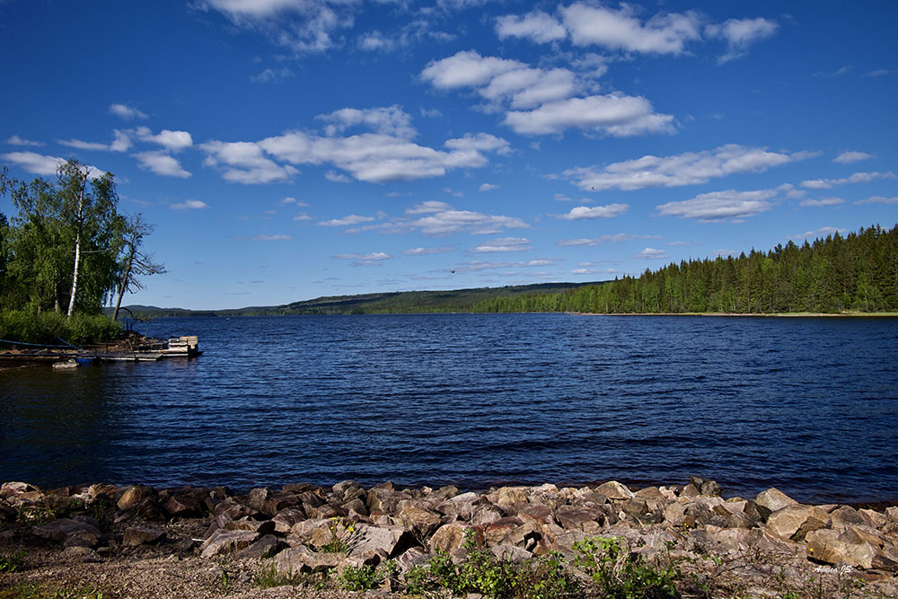 Vid sjön Gräsmångens strand kan man i norr se hur blånande berg klädda av barrskogar med karaktär av Norrland tecknar sig, och om man vänder man sig åt motsatt håll ser man lövskogar som för tankarna långt mot söder.