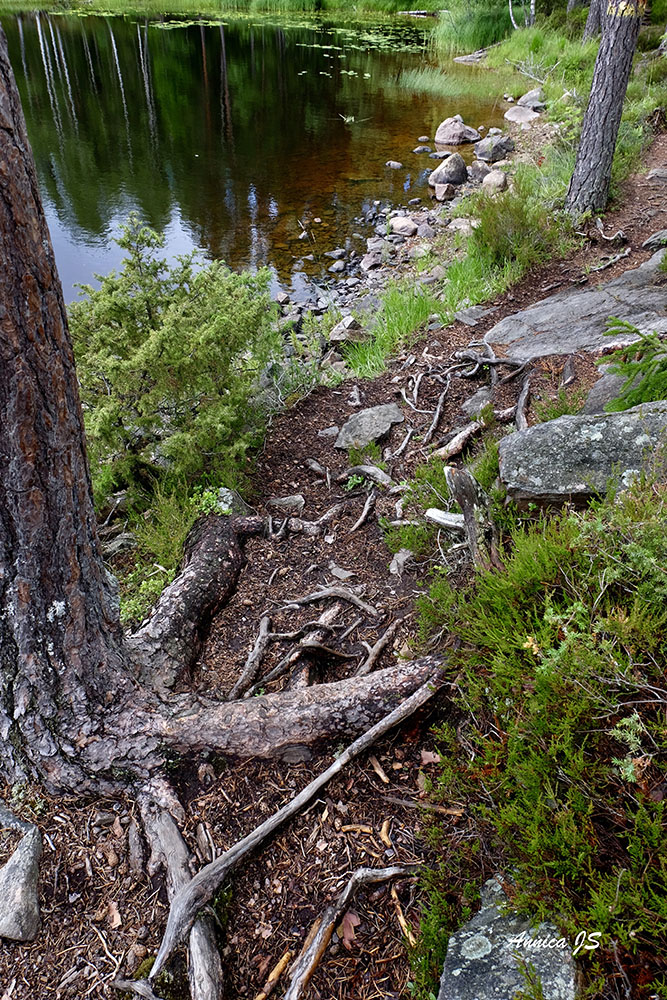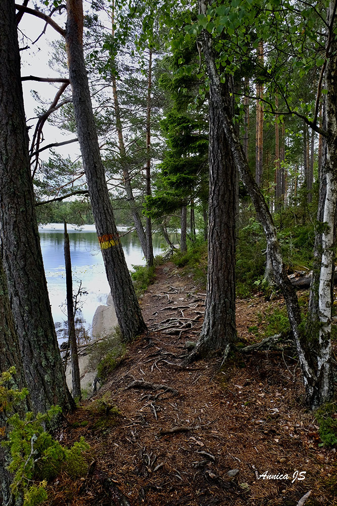 På vissa ställen är det mycket rötter som man får korsa över. När det regnat blir det halkigt så man får ta det lite försiktigt.