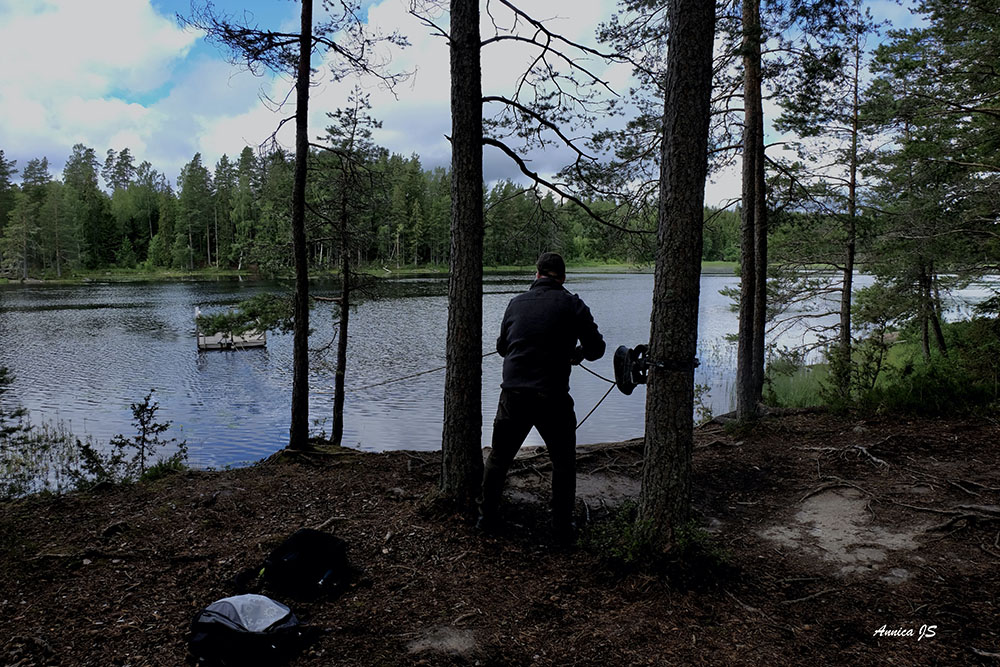 Det var inte alldeles lätt att först dra flotten från andra sidan, för att sedan dra flottan en gång till över sjön, fast nu med passagerare och packning.
