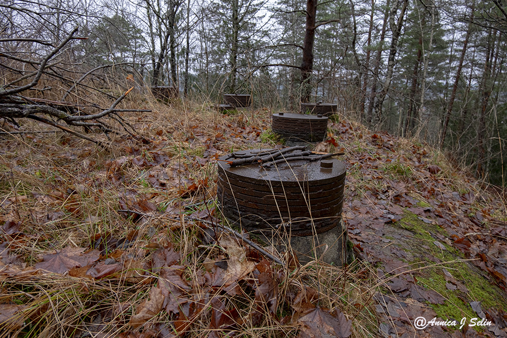 Man byggde då även skyddsrum i berget, som skydd vid eventuella flyganfall. Det är detta gamla skyddsrums ventilationsrör som syns på bild.