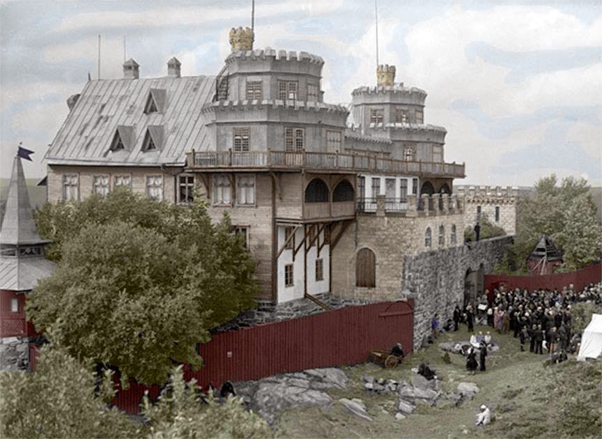 Men bilden nedan, som ska vara från ca 1932, ger en förståelse för hur stor och häftig denna borg var. Sommarhuset blev alltså en hel borg. Vilket bygge!