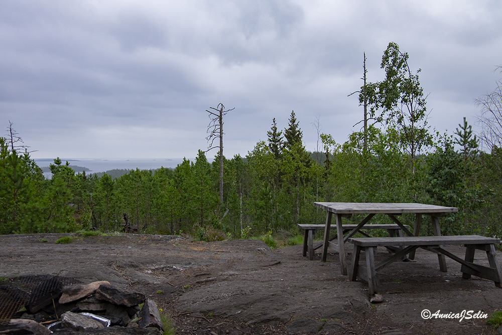 Det finns fler rastplatser med bänkar där man kan stanna till en stund. På toppen finns en grillplats och ett vindskydd.